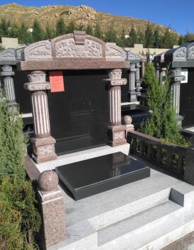 簡介—— 我們來看看包頭公墓的幸福之家。 寓意:欄板和基礎猶如一個庭院,碑頂是一簇茂盛的花藤,象征著美滿、和諧。適用于恩愛夫妻,子