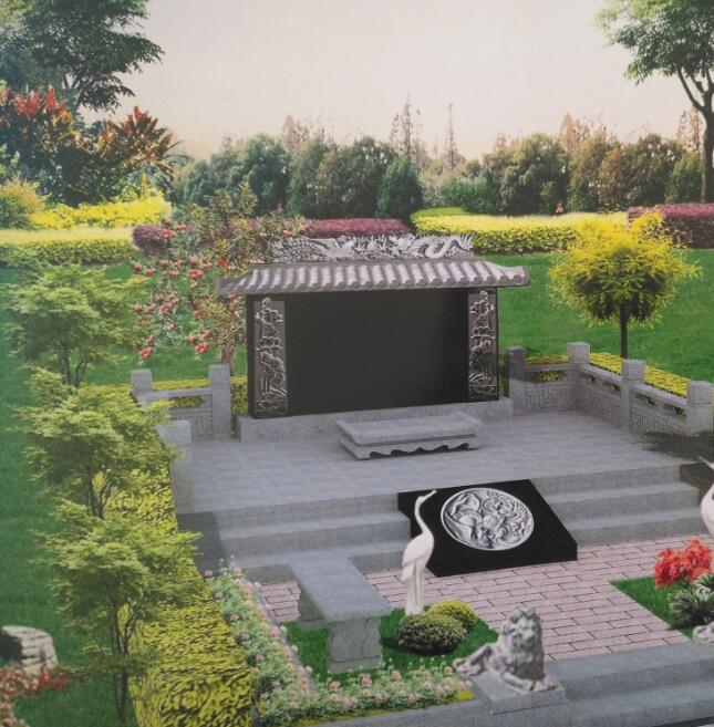 墓位區域:和風別院 占地面積:800*1000*1420H 主要石材: A、主碑、墓蓋中國黑; 欄板、柱頭白麻 B、主碑…